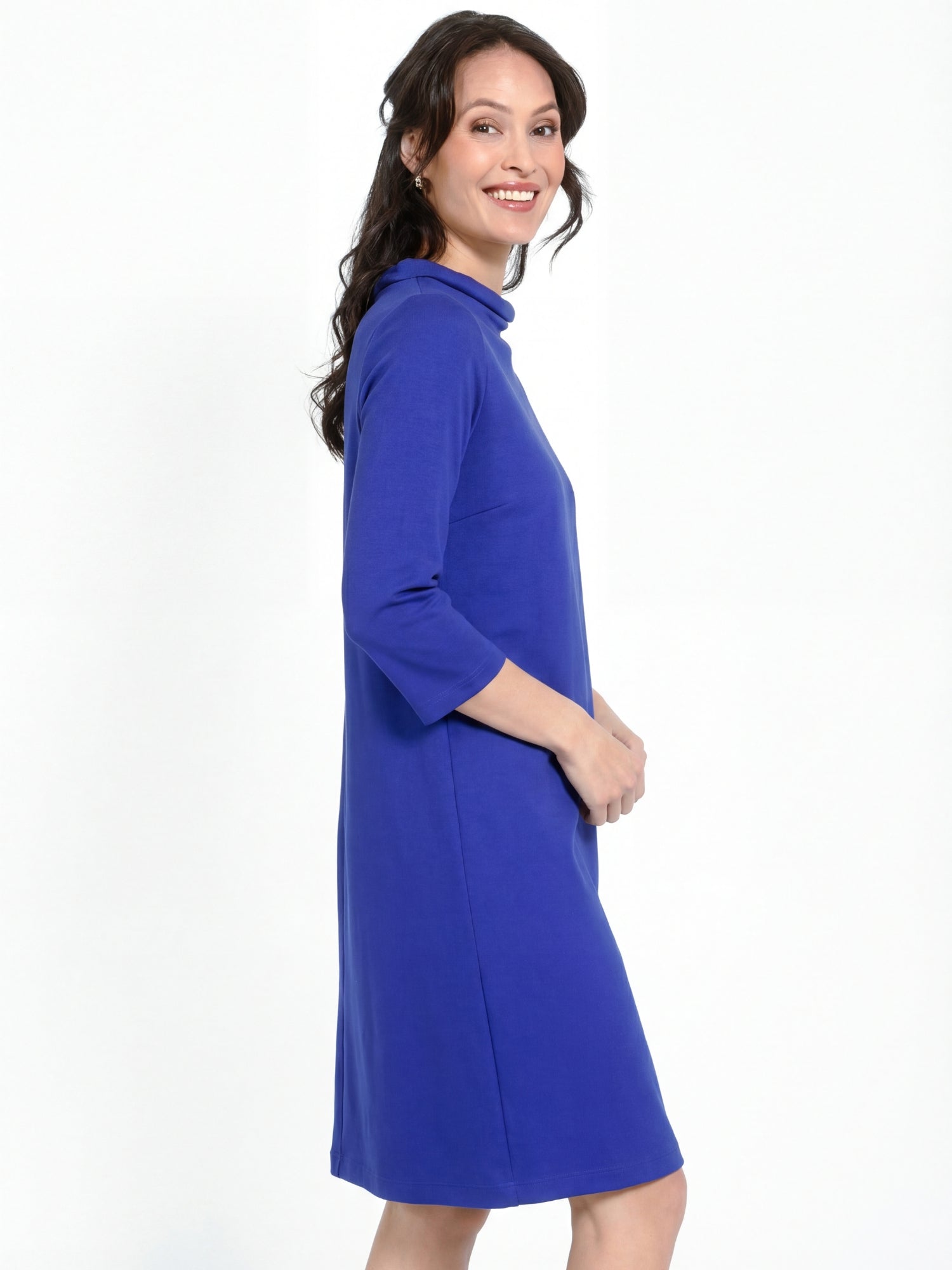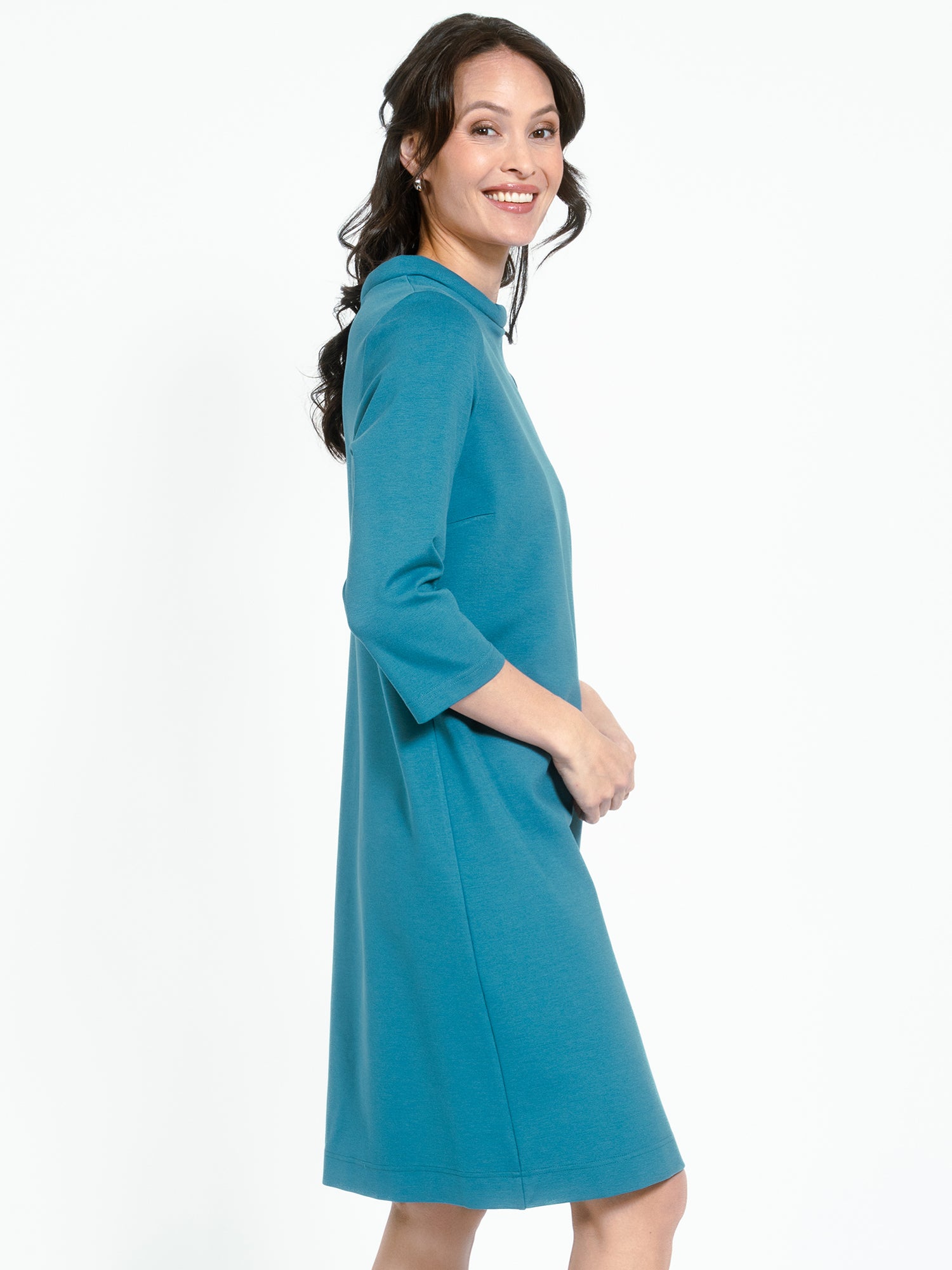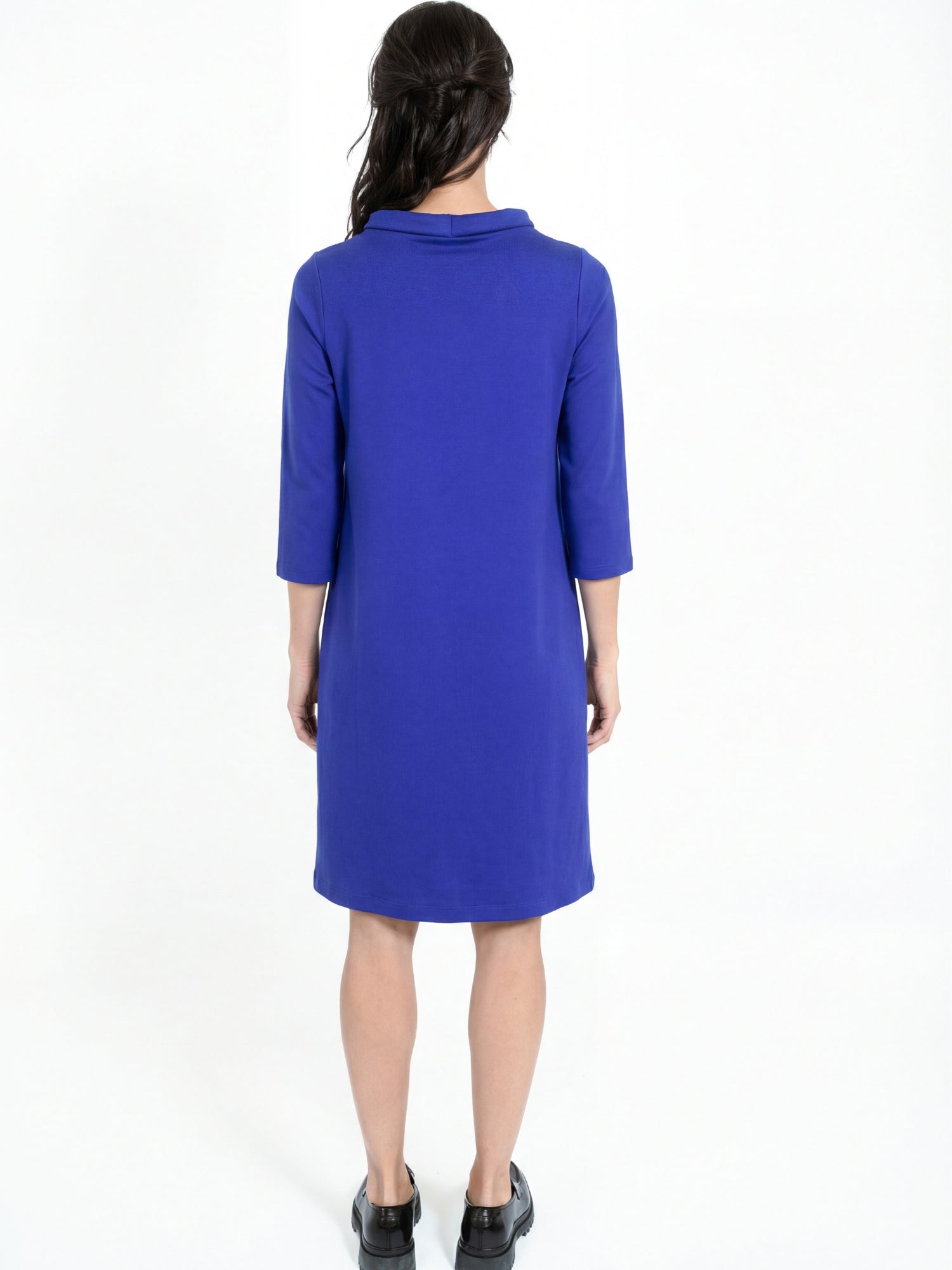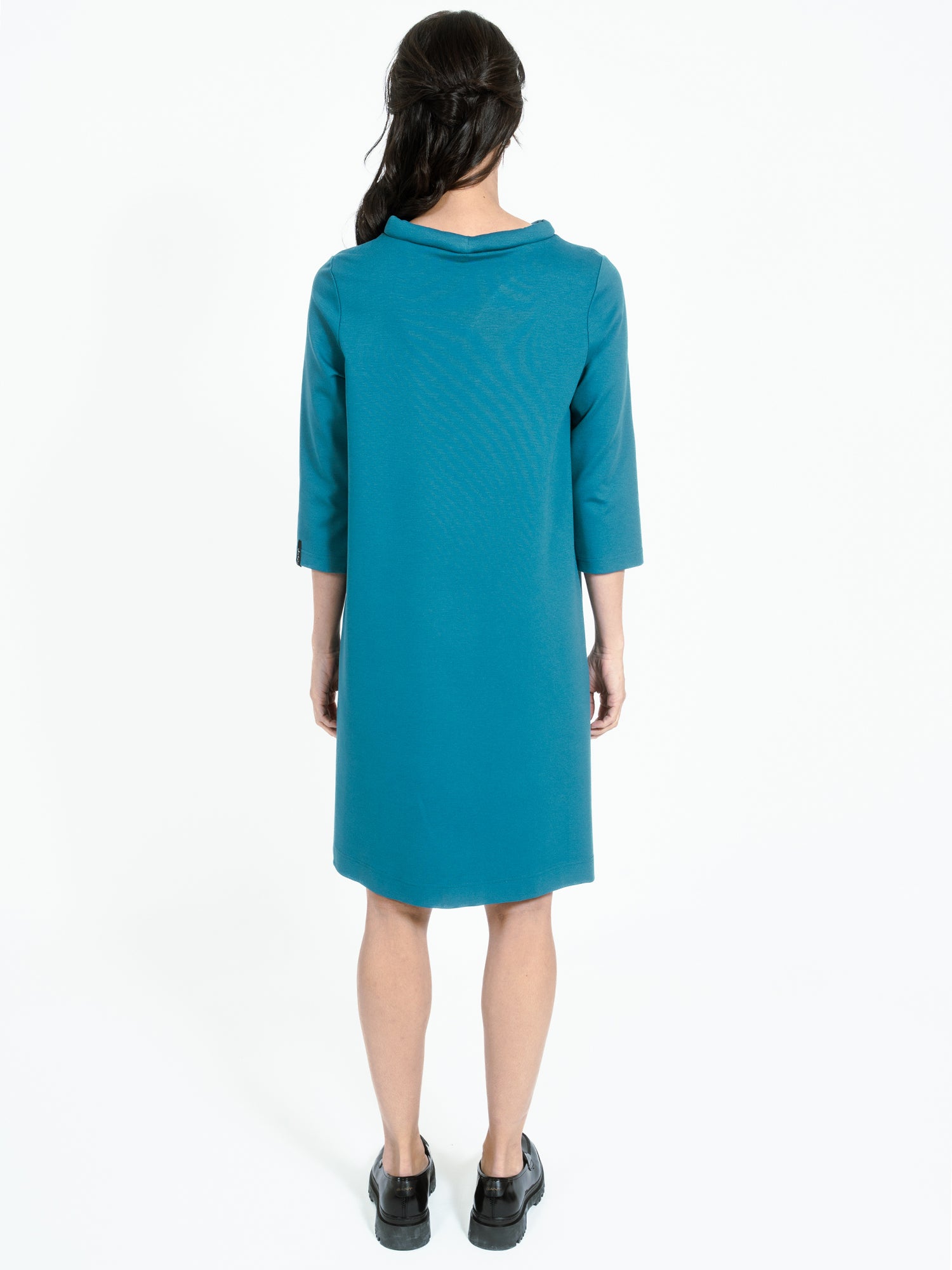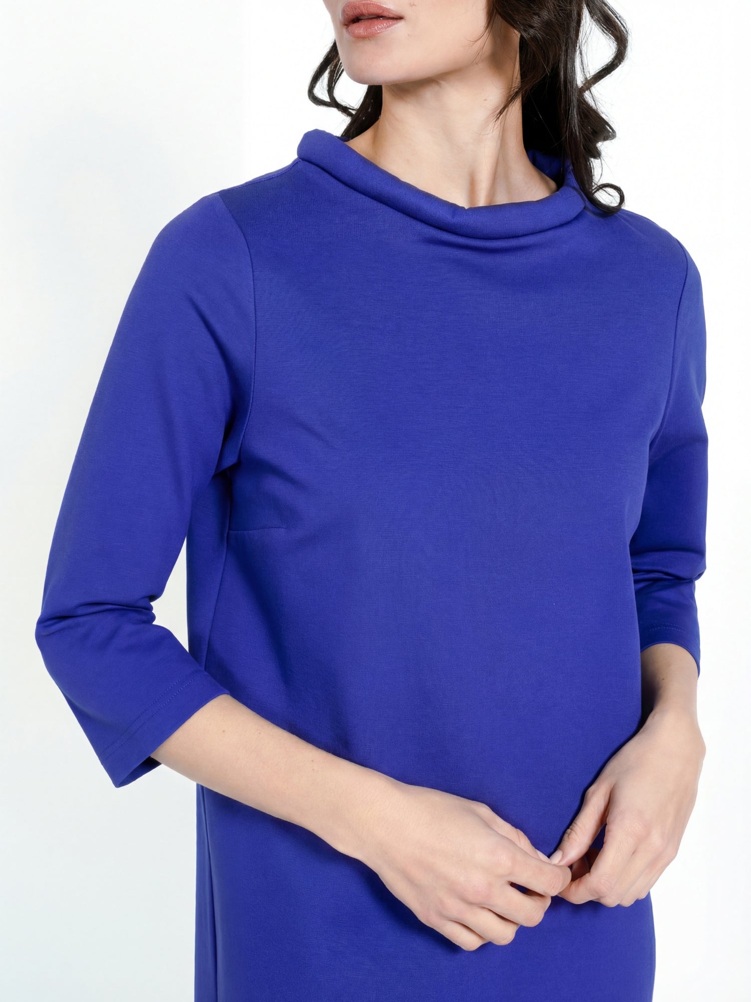 Dress in slightly heavier and stretchy quality from Jascha Stockholm. Knee-length model with light padded collar and three- quarter length sleeve.